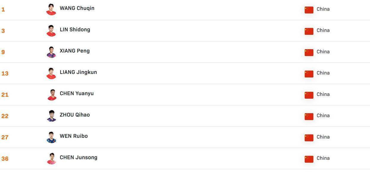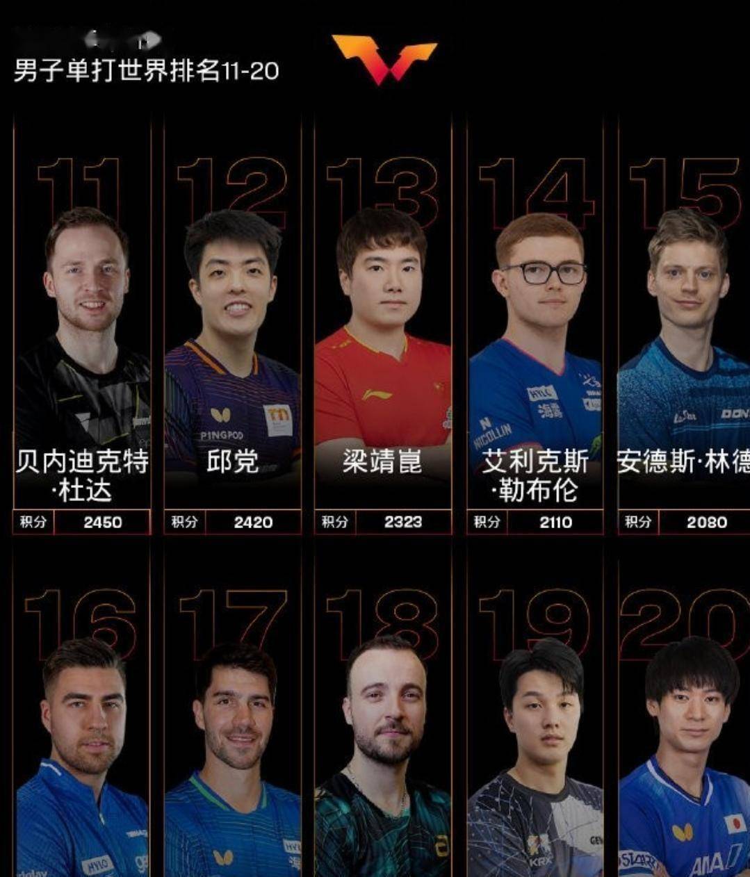 更值得注意的是在第11到30名的区间,欧洲军团形成了强大的集团优势。 德国队尤为突出,杜达第11,邱党第12,弗朗西斯卡第17,老将奥恰洛夫第26。 他们像一群饥饿的狼,紧紧盯着排名下滑的梁靖崑,随时准备发起冲击。